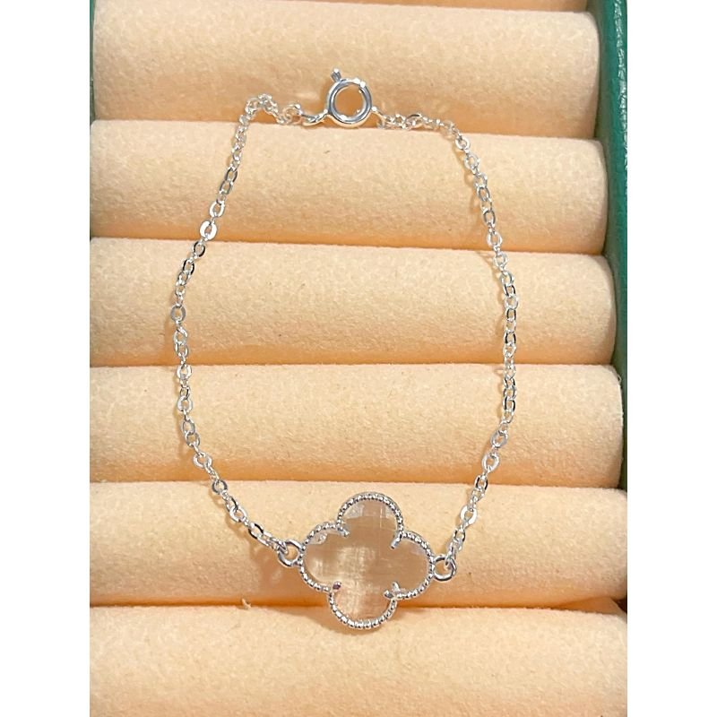 Pulseira de mini elos com trevo cristal banhado em ródio branco
