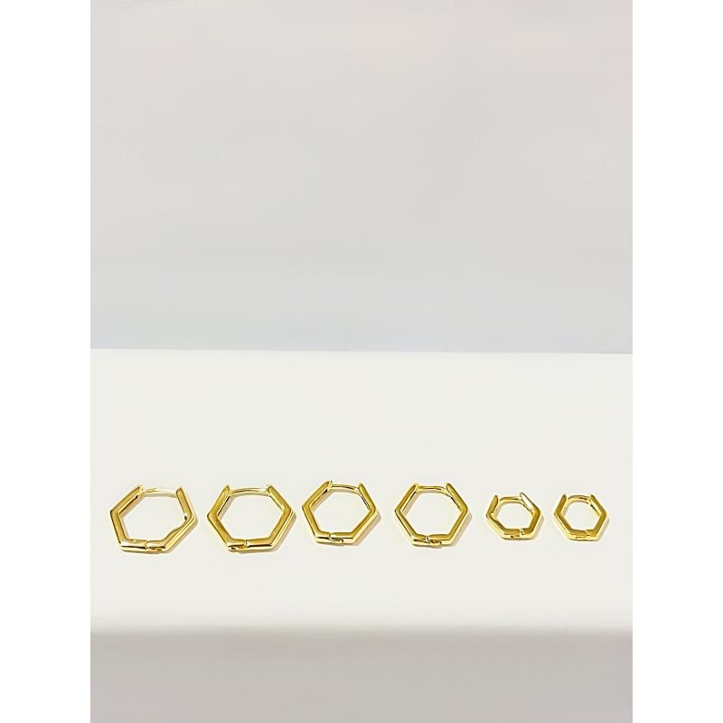 Trio de argolinha design hexagonal banhada em ouro 18k