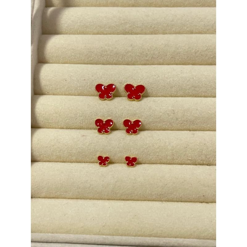 Trio de brinco borboleta na cor vermelho banhado em ouro 18k
