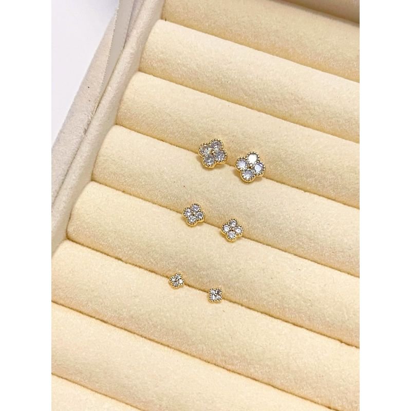 Trio de brinco trevo com pingos de zircônias banhado em ouro 18k