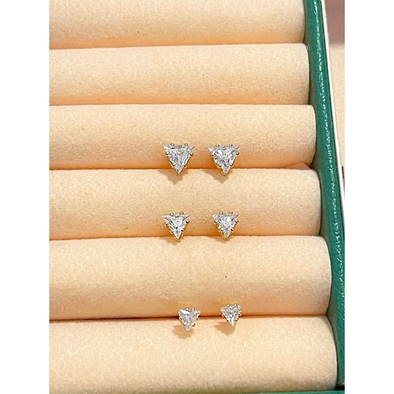 Trio de brinco triângulo cristal banhado em ouro 18k